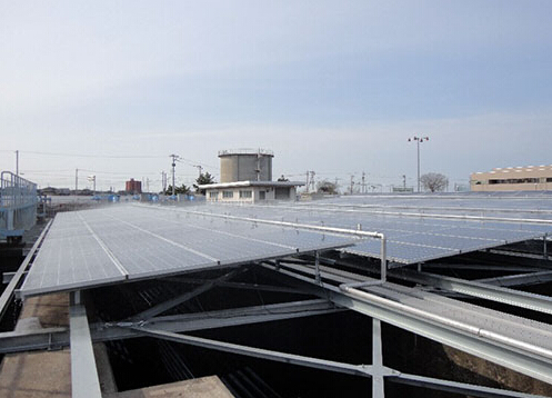 2014年3月,富山縣企業(yè)局在水力發(fā)電之外,又運(yùn)營(yíng)了首個(gè)光伏電站。這就是輸出功率1.75MW的“神通川凈水廠光伏電站”(圖1)。在停業(yè)的神通川凈水廠(富山市松木)內(nèi),鋪設(shè)了7248張?zhí)?yáng)能電池板。年發(fā)電量預(yù)計(jì)為208.9萬(wàn)kWh,相當(dāng)于580戶家庭的用電量。建設(shè)費(fèi)用為7.22億日元。利用固定