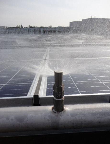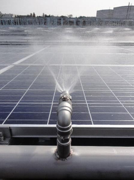 山本主任表示,“利用使噴出的水流流到電池板下方水池里的優(yōu)點,構(gòu)筑了性價比
