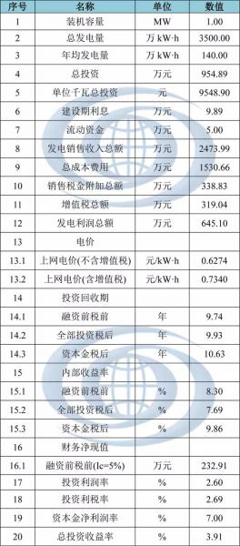 表2:I類資源區(qū)工商業(yè)分布式光伏電站財(cái)務(wù)指標(biāo)表