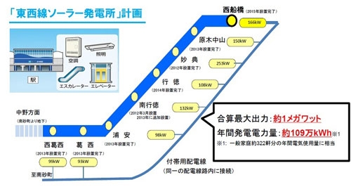 圖7:“東西線光伏電站”計劃的概要。用作8個地上車站的附帶電力。(出處:東京地鐵)