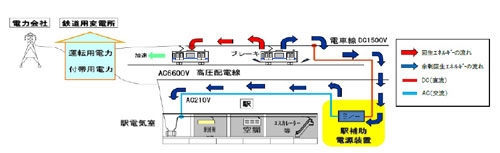動力車等馬達(dá)驅(qū)動車輛的節(jié)能技術(shù)得到了普及。但一般的系統(tǒng)是將再生電力用于電動汽車的馬達(dá)驅(qū)動。而東京地鐵的一大特點(diǎn)是把再生電力用于車站照明和空調(diào)等。