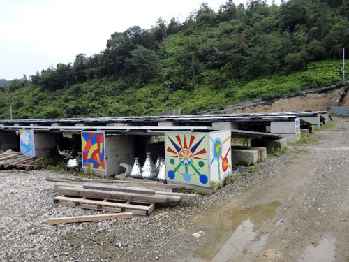 圖3:在混凝土預(yù)制塊基礎(chǔ)上裝了繪畫作品(攝影:日經(jīng)BP社)