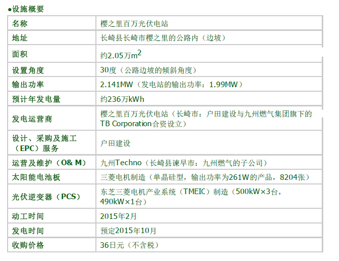 發(fā)電站由戶田建設(shè)與九州燃?xì)猓ㄩL(zhǎng)崎縣諫早市)的集團(tuán)公司TB Corpo