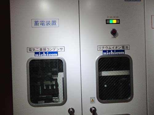 圖6:尼吉康制造的鋰離子蓄電池和雙電層電容器(攝影:日經(jīng)BP社)