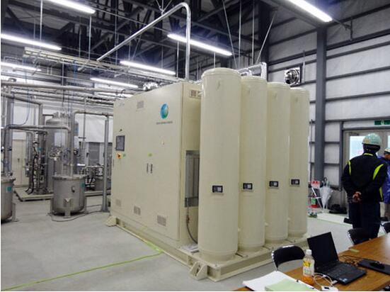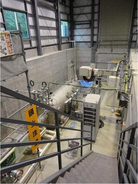 石狩光伏電站隔壁和石狩數(shù)據(jù)中心,均建有約三層樓高的廠房,超導(dǎo)電纜的末端在此露面(圖8)。進(jìn)入廠房就可看到,一樓有采用液氮的冷卻系統(tǒng)和制冷機(jī)等,用來向地下室的超導(dǎo)電纜輸送液氮(圖9)。