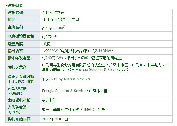 太陽能電池板由東芝制造,PCS采用東芝三菱電機(jī)產(chǎn)業(yè)系統(tǒng)(TMEIC)的產(chǎn)品。其他6座發(fā)電站采用的是三菱電機(jī)的太陽能電池板。而PCS,7座光伏電站全部采用的是TMEIC產(chǎn)品。