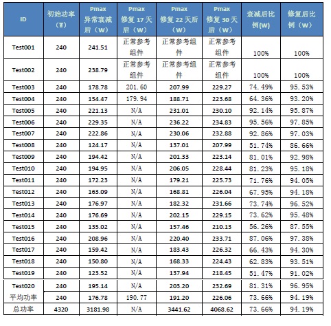 下圖為運(yùn)行超過(guò)3年的電池板,經(jīng)過(guò)Projoy-PID修復(fù)后的結(jié)果: