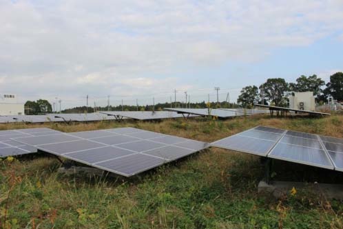 北側(cè)的通路和草坪廣場位置原本就很平坦,因此未作平整就直接鋪設(shè)了太陽能電池板。設(shè)置高度方面,電池板最低部分為60cm,設(shè)置角度為10度。