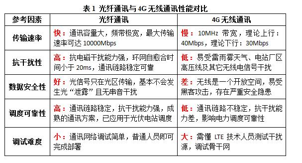 綜上所述,光纖通訊與4G無線通訊的對比如表1所示。