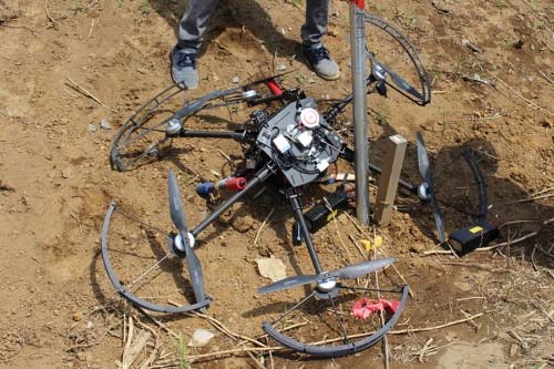 圖4:剛剛墜落的無人機(jī)從多個(gè)角度拍攝(攝影:日經(jīng)BP社)