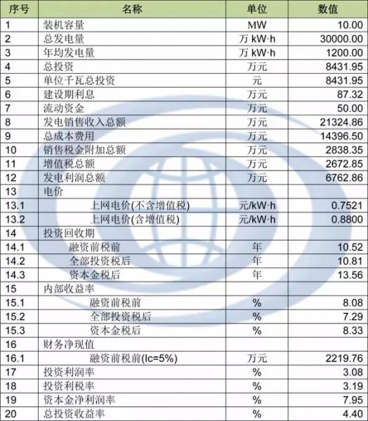 表3分布式光伏項目財務(wù)指標(biāo)表