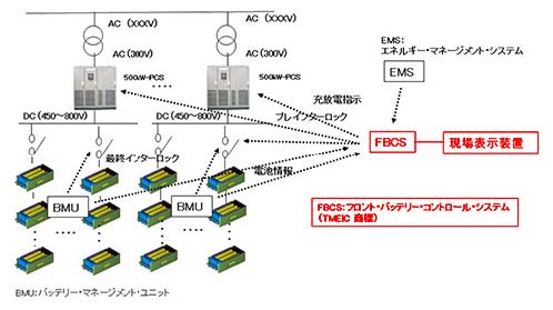 圖7:“FBCS(Front Battery Control System)”能在監(jiān)視所有蓄電池狀態(tài)的同時(shí),相應(yīng)于電池特性控制充放電量和聯(lián)鎖(出處:東芝三菱電機(jī)產(chǎn)業(yè)系統(tǒng))