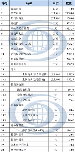 表2:分布式光伏項目財務(wù)指標(biāo)表