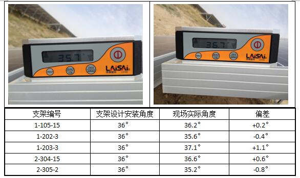 例如在電站建設(shè)完驗(yàn)收檢查經(jīng)常遇到,組件安裝平齊度達(dá)不到規(guī)范要求、支架安裝角度與設(shè)計(jì)有誤差(如下表所示):