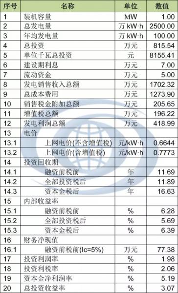 表3:1MW分布式光伏項(xiàng)目財(cái)務(wù)指標(biāo)表