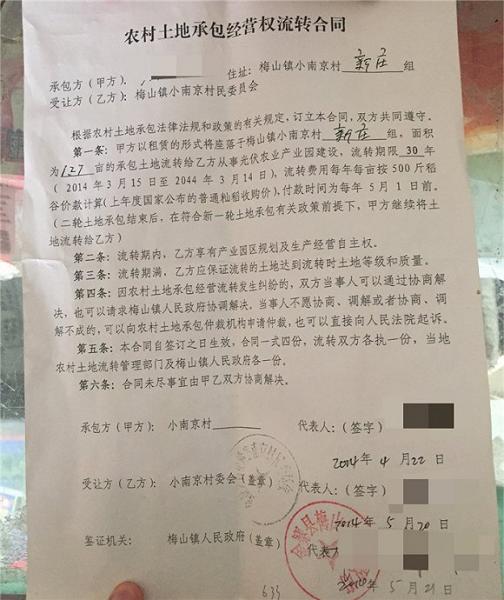 村委會(huì)與村民簽訂的土地承包經(jīng)營(yíng)權(quán)流轉(zhuǎn)合同。攝影:熊少翀