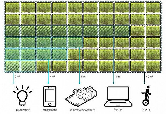 為筆記本電腦、手機等物供電所需的估計苔蘚發(fā)電面積