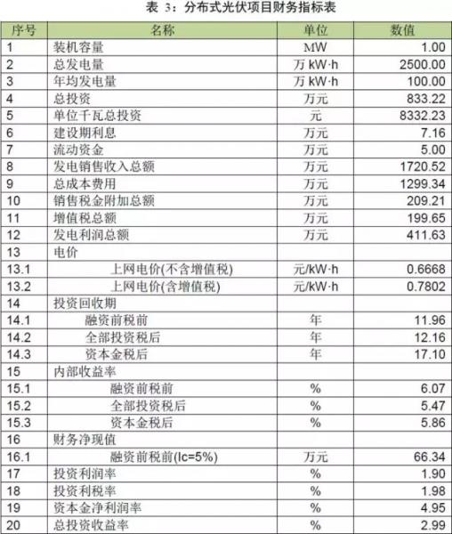 分布式光伏項(xiàng)目財(cái)務(wù)指標(biāo)表