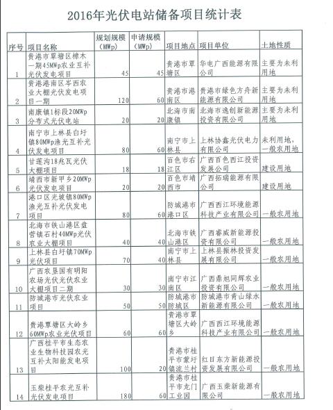 廣西能源局公布2016年光伏電站儲(chǔ)備項(xiàng)目名單