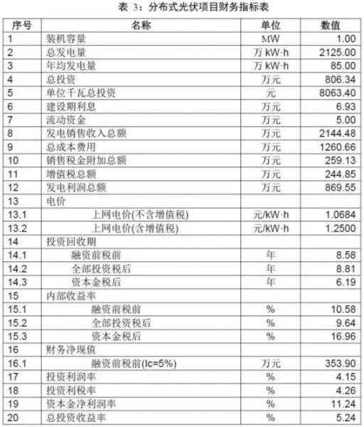分布式光伏項(xiàng)目可選擇三種模式(國家補(bǔ)貼為20年):如果選擇“全額上網(wǎng)”方式,對應(yīng)的光伏標(biāo)桿電價(jià)為0.95元/kWh;如果選擇“自發(fā)自用,余電上網(wǎng)”,國家給予0.42元/kWh的電價(jià)補(bǔ)貼,上網(wǎng)部分按照當(dāng)?shù)厝济簶?biāo)桿電價(jià)收購;全部“自發(fā)自用”,則電價(jià)為售電價(jià)格、國家電價(jià)補(bǔ)貼價(jià)格與省級補(bǔ)貼之和。根據(jù)河南省電網(wǎng)銷售電價(jià)表,項(xiàng)目電價(jià)采用一般工商業(yè)電價(jià):1.25元/kWh,項(xiàng)目裝機(jī)容量為1MW,單位造價(jià)為8000元。依據(jù)以上條件測算,項(xiàng)目融資前稅前收益率在10.58%之間,滿足投資要求。