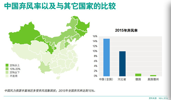 德國和美國德州通過新增輸電線路、調(diào)整電力市場(chǎng)規(guī)則和電網(wǎng)運(yùn)營模式,成功降低了棄風(fēng)率。目前,德國和美國德州的棄風(fēng)率低于年發(fā)電量的1%,且二者仍在不斷完善政策:德國計(jì)劃在2025年可再生能源電力占比達(dá)到80%;德州計(jì)劃在2015-2017年之間,將風(fēng)電和光電容量提高1倍。