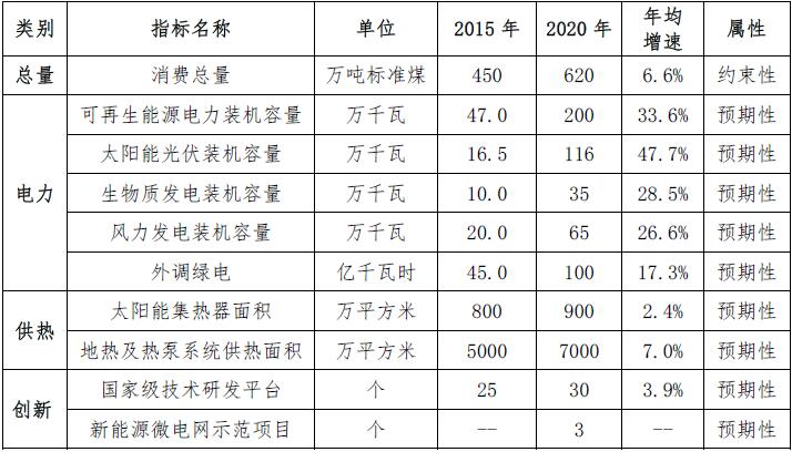 到2020年,本市新增新能源和可再生能源利用面積2000萬平方米,累計利用面積達到7000萬平方米,占全市供熱面積的比重達到7%左右。