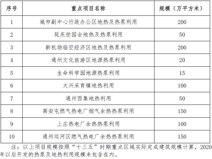 加快實(shí)施地?zé)峋C合利用。加強(qiáng)地?zé)豳Y源的統(tǒng)一規(guī)劃、資源管理、規(guī)模開發(fā)和梯級(jí)利用。按照本市新建區(qū)域發(fā)展規(guī)劃,重點(diǎn)開發(fā)延慶、鳳河營、雙橋等地?zé)崽镔Y源,實(shí)施新機(jī)場(chǎng)臨空經(jīng)濟(jì)區(qū)、世園會(huì)、通州西集等一批地?zé)峁┡瘧?yīng)用示范工程。加強(qiáng)10大地?zé)崽镔Y源勘察,強(qiáng)化與市政基礎(chǔ)設(shè)施專項(xiàng)規(guī)劃的銜接,鼓勵(lì)開發(fā)京西北、天竺、后沙峪、李遂等地?zé)崽镔Y源。加快中深層地?zé)、增?qiáng)型地?zé)嵯到y(tǒng)等新技術(shù)的研發(fā)與應(yīng)用示范!笆濉睍r(shí)期,新增地?zé)峁┡娣e300萬平方米。