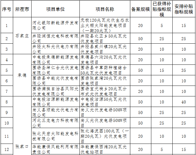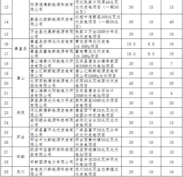 河北省2016年第一批普通光伏發(fā)電項目并網(wǎng)計劃安排情況公示