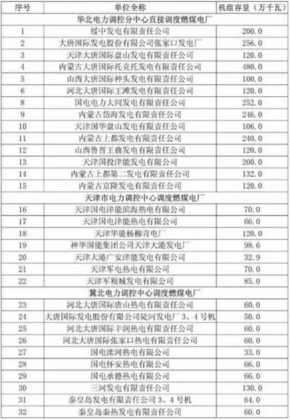京津唐燃煤發(fā)電企業(yè)名單