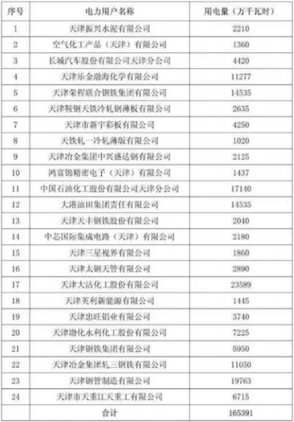 天津電力用戶名單