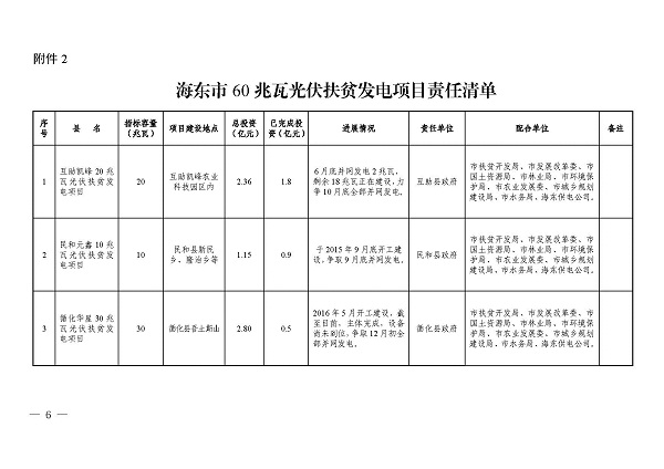 為加快推進(jìn)我市光伏發(fā)電項目,落實(shí)各項建設(shè)條件,爭取盡早開工建設(shè),現(xiàn)將市發(fā)展改革委編制的《海東市490兆瓦光伏發(fā)電項目責(zé)任清單》和《海東市60兆瓦光伏扶貧發(fā)電項目責(zé)任清單》轉(zhuǎn)發(fā)給你們,請結(jié)合實(shí)際加快推進(jìn)落實(shí)。