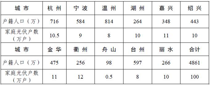 表4—2 浙江省百萬家庭屋頂光伏工程規(guī)劃布局表