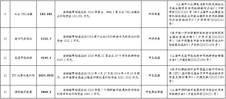 上海市2016年節(jié)能減排專項資金安排計劃(第十批)