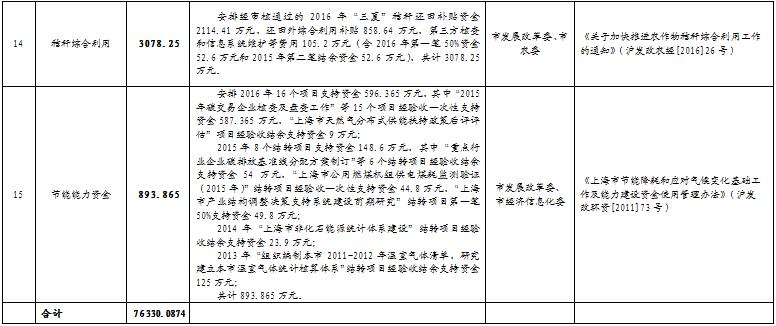 你們報來的資金使用計劃申請函(滬經(jīng)信節(jié)[2016]793號,滬經(jīng)信調(diào)[2016]643號,滬建建材[2016]1002、1013號、滬交科[2016]1227、1246號、滬農(nóng)委[2016]302號、滬水務(wù)[2016]1501、1590號、滬環(huán)保防[2016]390、391號及有關(guān)材料已收悉。經(jīng)研究,現(xiàn)將資金安排計劃下達(dá)給你們,共15項,計劃下達(dá)節(jié)能減排專項資金76330.0874萬元(詳見附表)。有關(guān)事項通知如下......