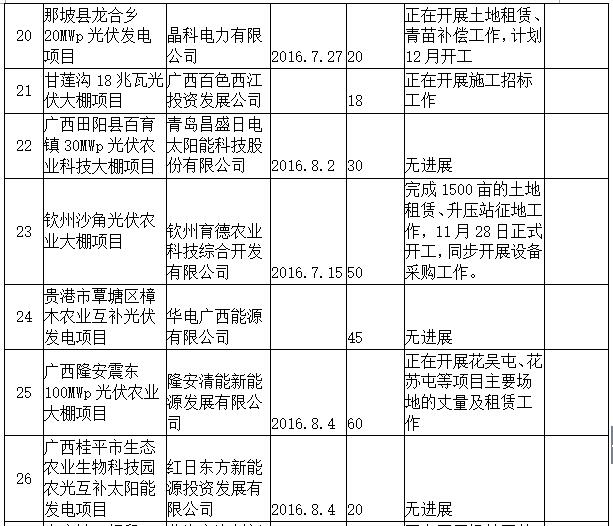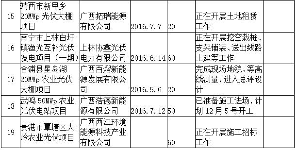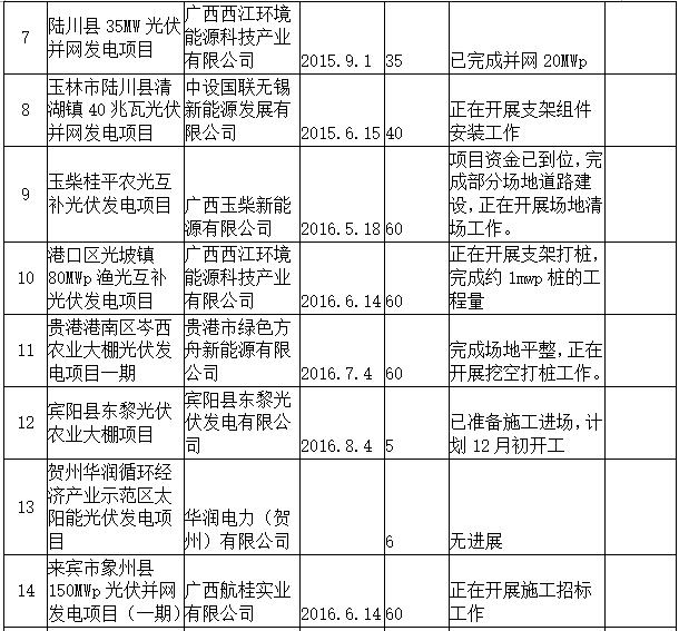 廣西2016年37個(gè)光伏電站項(xiàng)目建設(shè)進(jìn)展情況(附表)