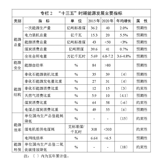 按照“十三五”規(guī)劃《綱要》總體要求,綜合考慮安全、資源、環(huán)境、技術(shù)、經(jīng)濟(jì)等因素,2020年能源發(fā)展主要目標(biāo)是: