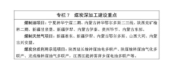 ——煤炭深加工。按照國家能源戰(zhàn)略技術(shù)儲備和產(chǎn)能儲備示范工程的定位,合理控制發(fā)展節(jié)奏,強(qiáng)化技術(shù)創(chuàng)新和市場風(fēng)險評估,嚴(yán)格落實(shí)環(huán)保準(zhǔn)入條件,有序發(fā)展煤炭深加工,穩(wěn)妥推進(jìn)煤制燃料、煤制烯烴等升級示范,增強(qiáng)項(xiàng)目競爭力和抗風(fēng)險能力。嚴(yán)格執(zhí)行能效、環(huán)保、節(jié)水和裝備自主化等標(biāo)準(zhǔn),積極探索煤炭深加工與煉油、石化、電力等產(chǎn)業(yè)有機(jī)融合的創(chuàng)新發(fā)展模式,力爭實(shí)現(xiàn)長期穩(wěn)定高水平運(yùn)行!笆濉逼陂g,煤制油、煤制天然氣生產(chǎn)能力達(dá)到1300萬噸和170億立方米左右。