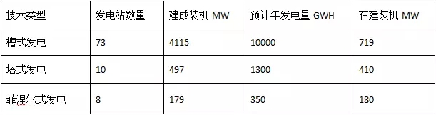 各種太陽(yáng)能熱發(fā)電技術(shù)裝機(jī)容量和發(fā)電量統(tǒng)計(jì)(粗略統(tǒng)計(jì),截至2016年2月)