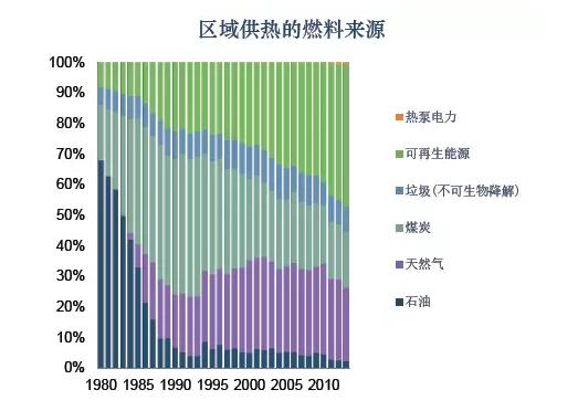 熱電聯(lián)產(chǎn)轉(zhuǎn)用生物質(zhì)燃料代替化石燃料,建設(shè)新的生物質(zhì)燃料專用的熱電聯(lián)產(chǎn)廠和燃燒生物質(zhì)的供熱廠,這意味著2013年有近45%的區(qū)域供熱來自可再生能源。對于丹麥社會來講,熱電聯(lián)產(chǎn)使能源消耗總量減少了11%。2013年,區(qū)域供熱提供的暖氣和熱水已覆蓋60%以上的丹麥家庭,但其平均成本只相當(dāng)于家庭平均收入的3%。