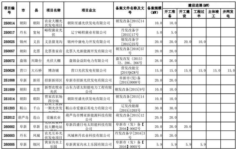 遼寧省普通光伏電站項(xiàng)目建設(shè)進(jìn)展信息 共4.3GW備案光伏項(xiàng)目