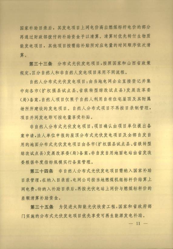 近日,山西能監(jiān)辦、山西發(fā)改委、山西經(jīng)化委、山西財(cái)政廳聯(lián)合下發(fā)關(guān)于《山西省可再生能源發(fā)電全額保證性收購暨補(bǔ)貼管理辦法》的通知,該補(bǔ)貼管理辦法適用于山西省境內(nèi)風(fēng)力發(fā)電、太陽能發(fā)電、生物質(zhì)能發(fā)電、地?zé)崮馨l(fā)電等可再生能源項(xiàng)目,其中明確分布式光伏發(fā)電項(xiàng)目暫不參與市場(chǎng)競(jìng)爭(zhēng),上網(wǎng)電量由電網(wǎng)企業(yè)全額收購;另明確規(guī)定,分布式光伏發(fā)