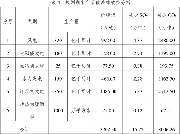 規(guī)劃期末山西省新能源開發(fā)利用將年節(jié)約標(biāo)煤3202.50萬噸。相應(yīng)可減少多種有害氣體和廢氣排放,其中減少SO2排放量約15.72萬噸,減少排放CO2約8006.26萬噸。
