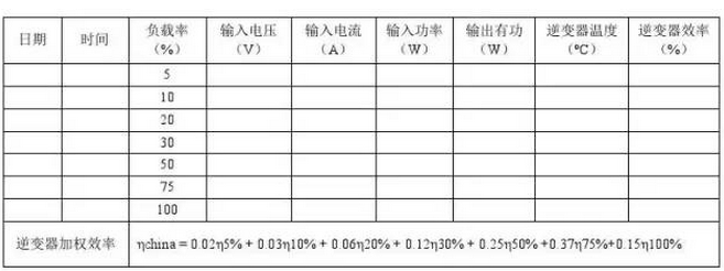 在不同負(fù)載率的情況下讀取逆變器的輸入/輸出功率,其加權(quán)平均值即為逆變器的加權(quán)效率,該電站測試時隨機(jī)抽取5臺逆變器,其轉(zhuǎn)換效率在98.82~98.89%之間。