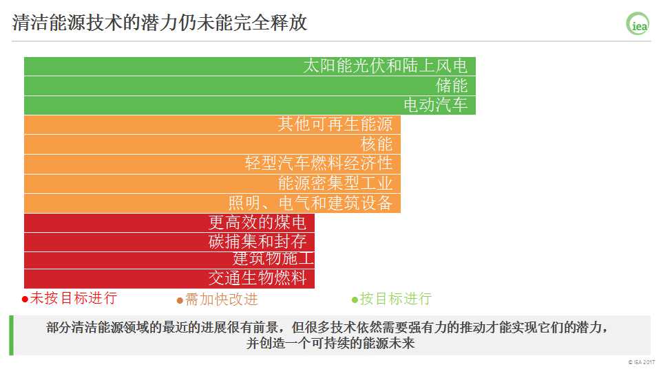 目前清潔能源技術(shù)進(jìn)步的水平距離2DS情景的需要還差的很遠(yuǎn),更不用說B2DS情景了。