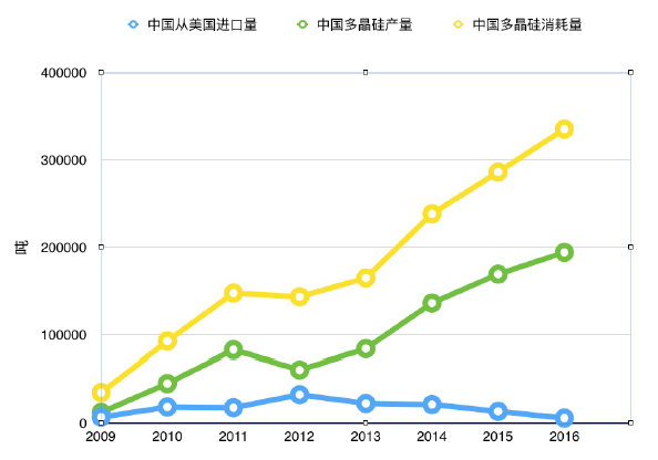 美國(guó)對(duì)中國(guó)的多晶硅出口,由2009年的6000多噸增加至2012年的3萬(wàn)2千多噸,國(guó)內(nèi)一半以上多晶硅生產(chǎn)企業(yè)在2011至2012年間停產(chǎn)甚至破產(chǎn)。