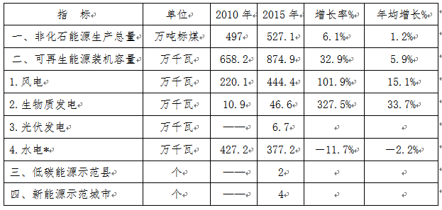 表2-1“十二五”新能源和可再生能源發(fā)展成就表