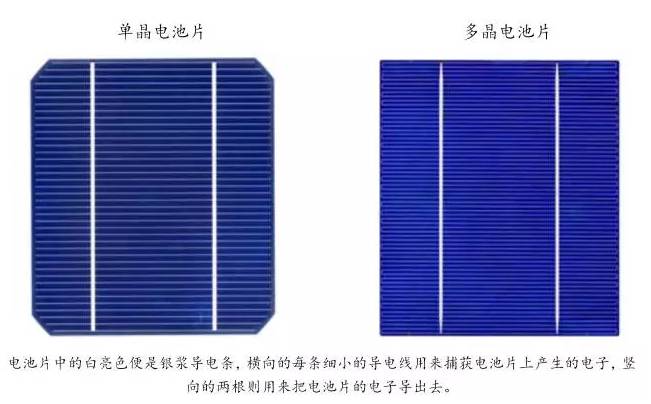 了解了上述流程,區(qū)分單晶組件和多晶組件就十分容易。單晶硅片由于四個角均為弧形,所以封裝成為組件之后單晶組件會有留白,會有大約3%的封裝損失。而多晶硅片為完美的正方形,不存在這方面的封裝損失,這使得多晶組件一定程度上彌補了效率。