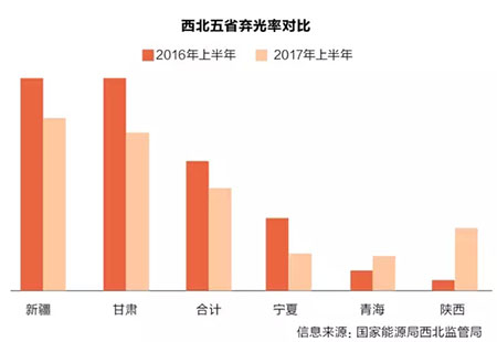 棄光率:西北地區(qū)情況好轉(zhuǎn)明顯。在有關(guān)部門(mén)對(duì)棄光地區(qū)裝機(jī)規(guī)模的嚴(yán)格控制,以及電網(wǎng)公司的積極推動(dòng)之下,與2016年相比,中國(guó)三北地區(qū)的棄光情況已有所改善。數(shù)據(jù)顯示,西北五省的棄光率同比下降4.2個(gè)百分點(diǎn),其中新疆、甘肅、寧夏等地的情況都有明顯好轉(zhuǎn)。值得注意的是,盡管國(guó)家電網(wǎng)公司對(duì)各個(gè)省公司已經(jīng)下達(dá)了硬性的新能源消納指標(biāo),并將其納入了績(jī)效考核,但除了國(guó)家電網(wǎng)之外,目前中國(guó)還存在著不少當(dāng)?shù)氐碾娋W(wǎng)企業(yè),由于這些企業(yè)由地方政府管理,因此并不受相關(guān)的績(jī)效考核約束。以陜西省為例,該省可再生能源消納比例位居全國(guó)倒數(shù)第一,盡管西北電網(wǎng)架結(jié)構(gòu)相對(duì)較好,但由于該省下屬的陜西地電對(duì)地方煤電有保護(hù)傾向,結(jié)果直接導(dǎo)致陜西省的棄光率從2016年的1.7%直接上升到2017年上半年的9.7%。