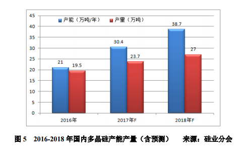 2017年以來,產(chǎn)能優(yōu)化和新增產(chǎn)能釋放從未停歇,國內(nèi)有效產(chǎn)能從年初的21萬噸/年一路增加至8月底的25.6萬噸/年,增幅達(dá)到21.9%,增量包括新特能源、四川永祥、洛陽中硅等的產(chǎn)能優(yōu)化,以及新疆大全、江蘇康博、東方希望、寧夏東夢、河南恒星等新增產(chǎn)能。8月份之后,陸續(xù)將有大批產(chǎn)能投放市場,包括年底前將釋放的鄂爾多斯多晶硅8000噸/年、天宏瑞科1.9萬噸/年、東方希望1.5萬噸/年,預(yù)計(jì)年底前國內(nèi)多晶硅產(chǎn)能將達(dá)到30.4萬噸/年。