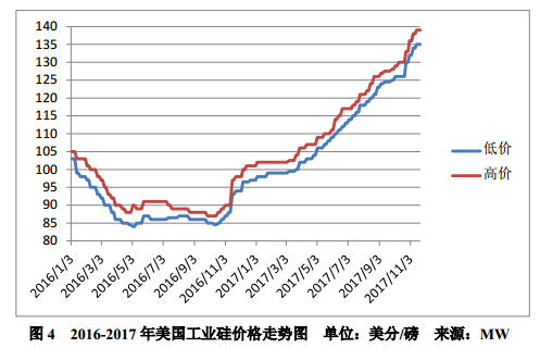 2.關(guān)于Ferroglobe在美國提交的貿(mào)易糾紛案件,美國商務(wù)部于2017年8月7日發(fā)布初步裁決,對來自澳大利亞、巴西和哈薩克斯坦的進(jìn)口金屬硅征收3.69%至120%的反補(bǔ)貼稅。2017年10月5日,美國商務(wù)部對進(jìn)口金屬硅反傾銷案件作出初裁,對來自澳大利亞、巴西、挪威的進(jìn)口金屬硅征收3.74%至134.92%不等的反傾銷稅。綜合來看,有超過63%的進(jìn)口金屬硅進(jìn)入美國將被要求征收一定的保證金。